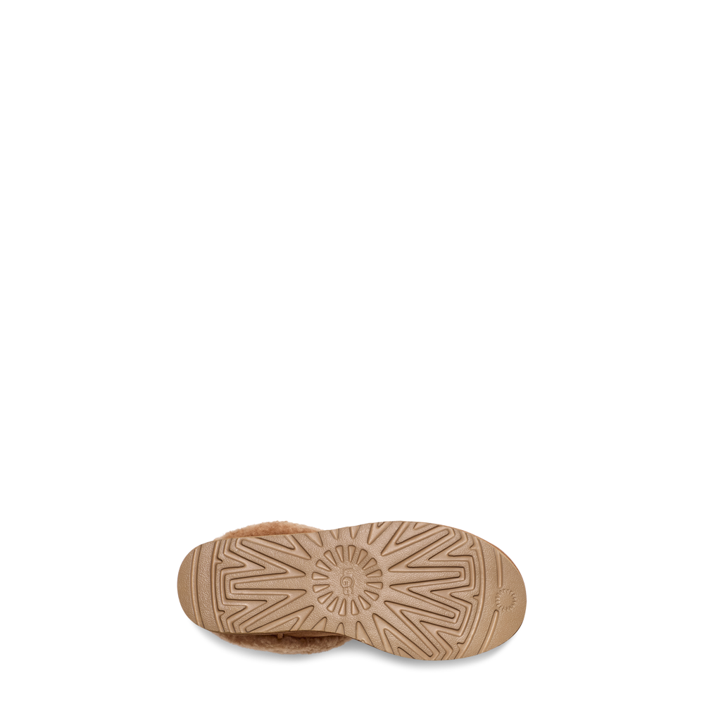 UGGbraid made with 100% recycled polyester fibers, Suede heel counter, Suede vamp, Padded collar, 10mm curly sheepskin shaft