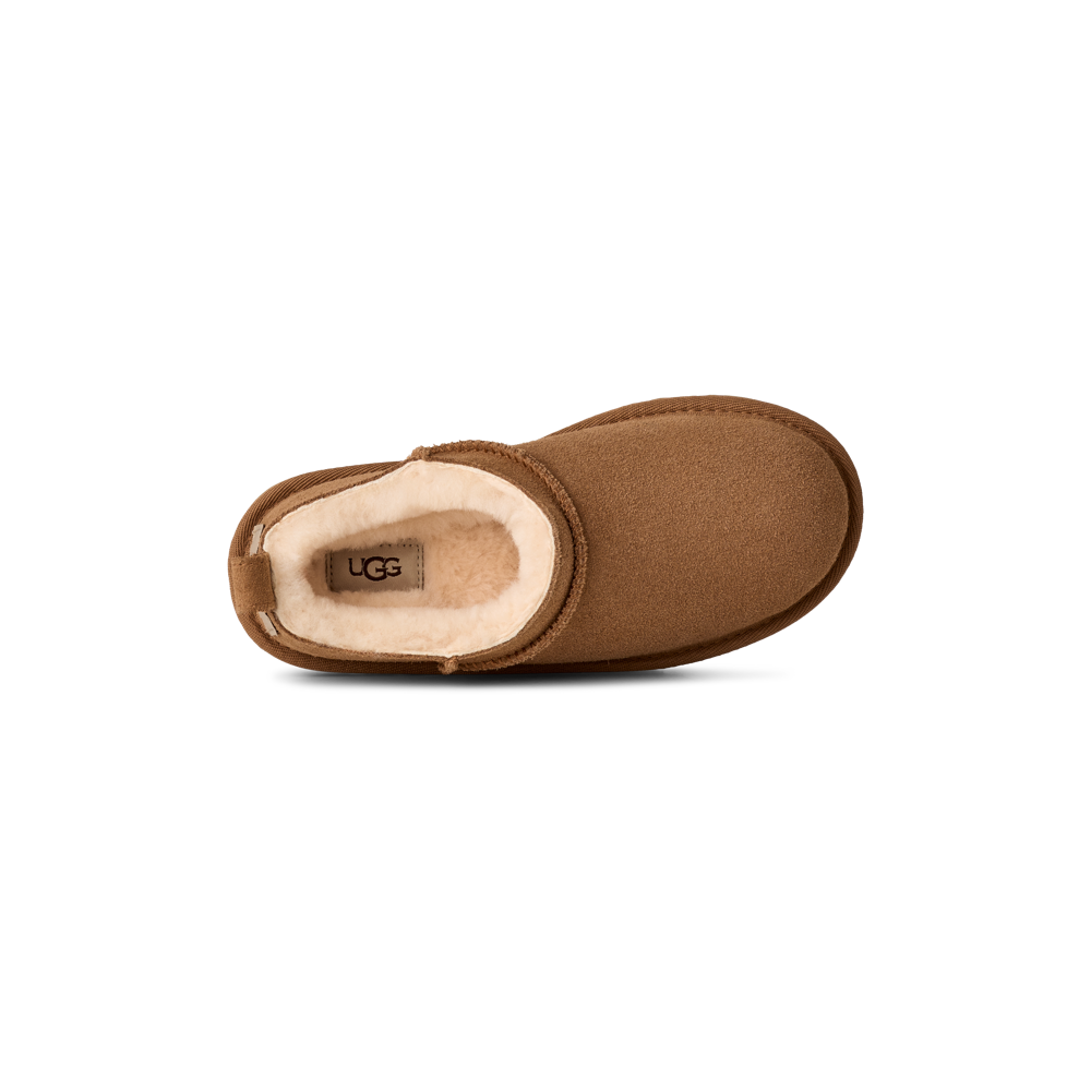 The Classic Micro reimagines the fan-favorite Classic Boot with a new, low-profile design. Made with the same UGGplush™ lining and instantly cozy comfort that kids love about the original, they'll love the Classic Micro's easy slip-on shape. It has a genuine suede upper and lightweight outsole from Sugarcane EVA.