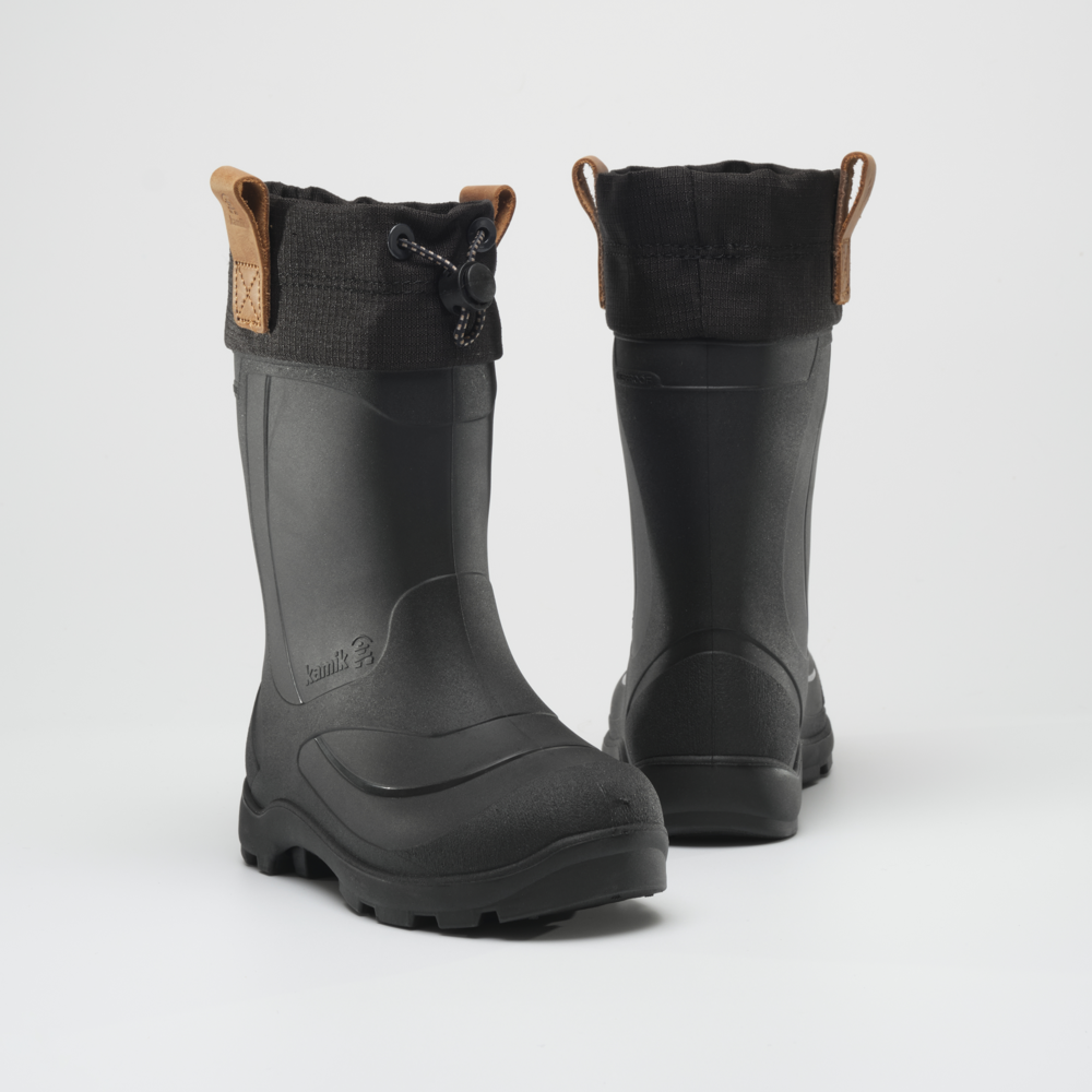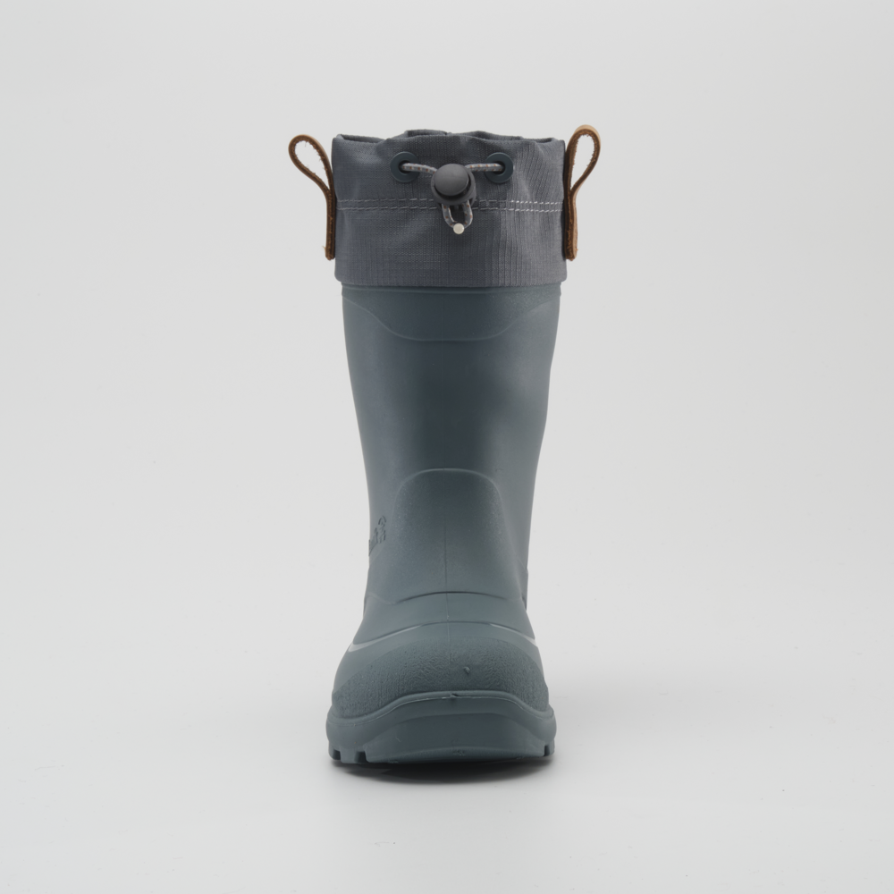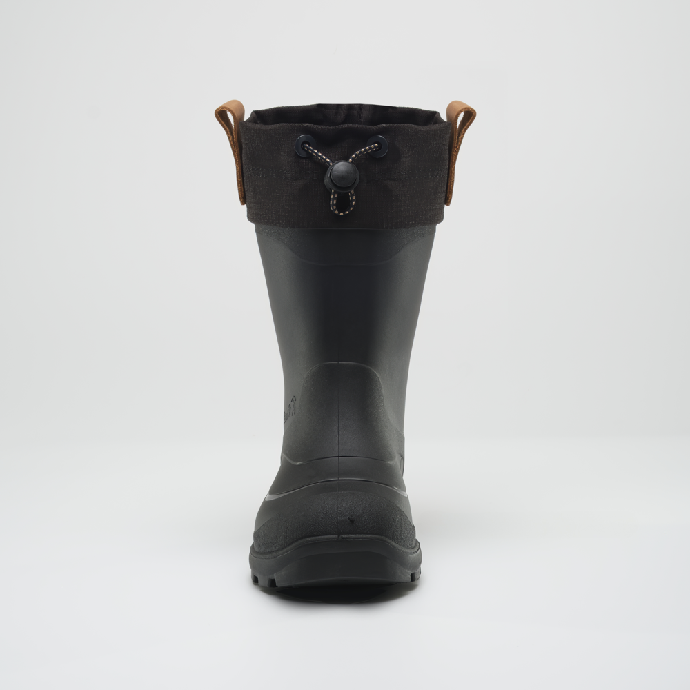 Cold-weather adventures start with warm feet! That's not a problem with our Tundra Jr rubber boots, featuring 100% waterproof synthetic RubberHe and a cozy Thermal Guard liner. The adjustable nylon collar helps to keep snow out, while the leather pull tabs offer an easy way to pull them on. Your child will be stable on their feet thanks to a lightweight design and multi-directional treads that offer better traction.